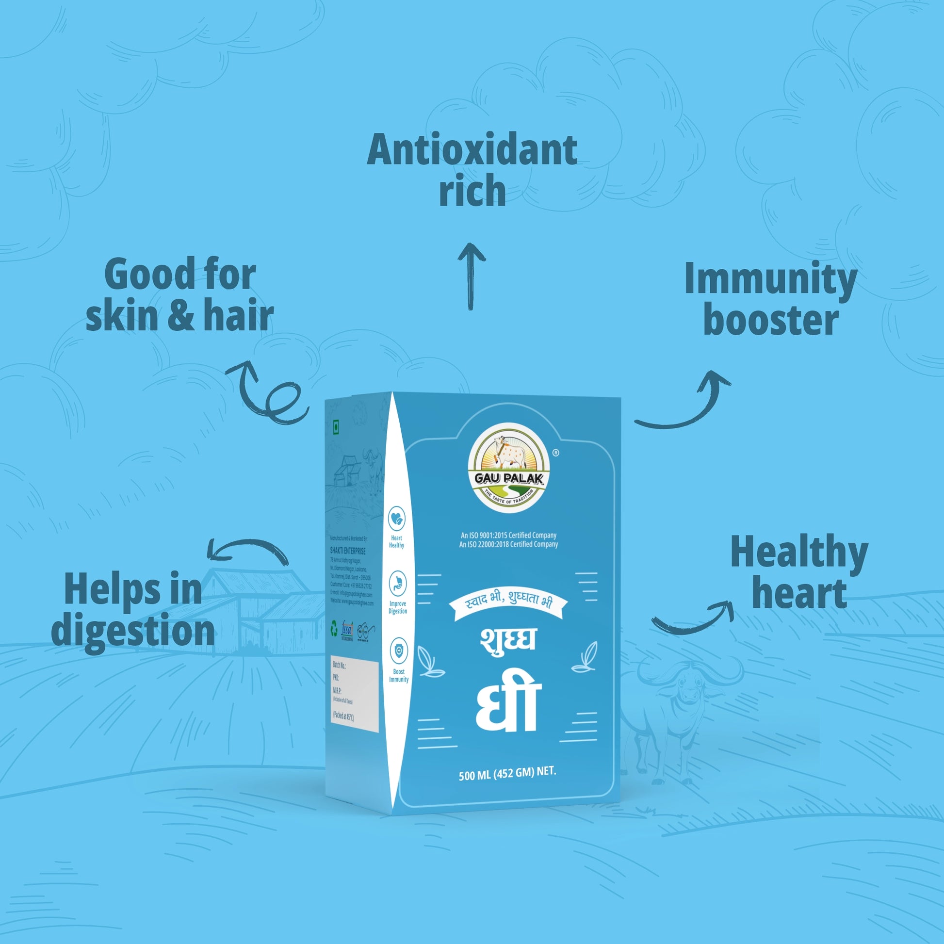 Gaupalak Pure Ghee is a pure, premium ghee made from grass-fed cow's milk using traditional Ayurvedic methods. With a rich aroma, golden color, and high nutritional value, it’s perfect for cooking, rituals, and boosting health with its vitamins, healthy fats, and immunity benefits.